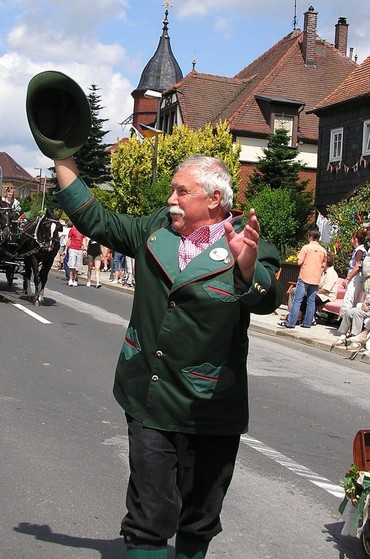 Frank Münnich begrüßt seit dem ersten Bierzug traditionell als Förster Sieber (im Bild beim Umtzug 2008) die Gäste entlang der B96.