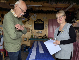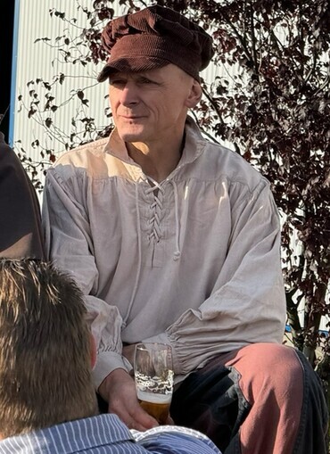Das Foto zeigt Volkmar beim Stellen für die Bierzug-Plakette im November 2023.