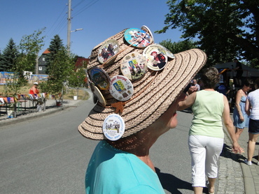Achtung, am Sonntag im Festzelt am Festplatz in Eibau werden wir nach dem Umzug die Teilnehmer mit den meisten Plaketten mit Preisen auszeichnen. Bedingung ist, dass die Plaketten offensichtlich am Körper getragen werden uns aus vielen unterschiedlichen Jahren sind. Je origineller die Plaketten präsentiert werden, desto besser! Beate Renger vom Organisationsteam wird die Prämierung vornehmen. Bei der Auswertung hilft uns das „Eibsche Quartett“. Sollten also viele Teilnehmer mit gleicher Anzahl zur Auswahl stehen, gibt es einen Mundart-Ausscheid.