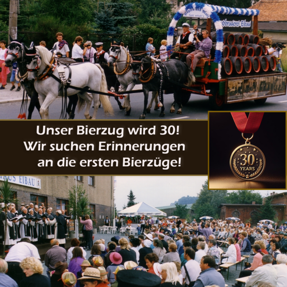 am Sonntag, dem 30. Juni 2024 jährt sich nun schon zum 30. Mal der Eibauer Bierzug. Man kann es eigentlich gar nicht glauben, dass der Bierzug schon so viele Jahre immer am letzten Juni-Sonntag durch die Straßen von Eibau zieht. Viele, die damit verbunden sind, werden sich gern an die Anfänge zurückerinnern. Leider leben viele der Protagonisten der ersten Stunde schon nicht mehr. Wir wollen uns mit diesem 30. Festumzug natürlich auch gern an diese Macher erinnern.