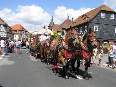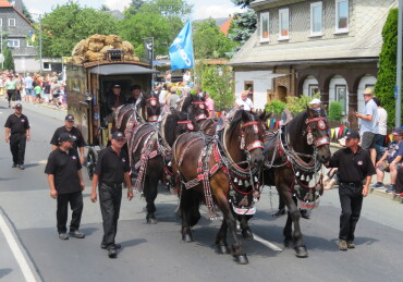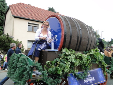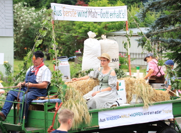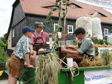 Der Wagen fährt traditionell im Brauereiblock beim Festumzug in der Tradition für den Anbau von Hopfen und Sommergerste für die für die Malzgewinnung und wird von zwei Pferden (Sächsisch-Thüringisches Schweres Warmblut) gezogen.