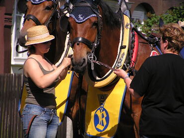 Anspannen der Pferde der Bergquellbrauerei Löbau am Stellplatz in Walddorf.