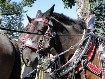 Das Prunkgespann der Bergquellbrauerei Löbau mit Prachtgeschirren.
