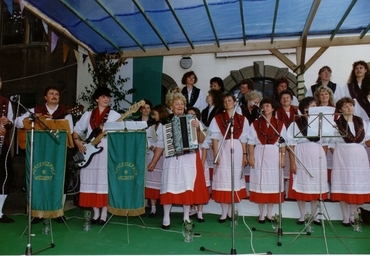 Viele Jahre begrüßte das Dorfensemble Walddorf e.V. unter der Leitung von Ingeborg Kießling die Gäste am Stellplatz in Walddorf mit einem Programm und war anschließend auch als Teilnehmer beim Festumzug dabei.