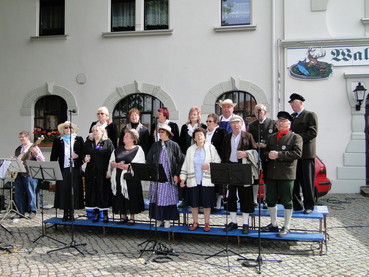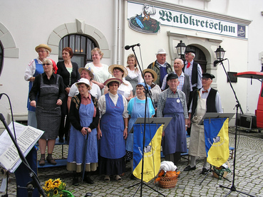 Die beschwingten Lieder des Ensembles vor dem Waldkretscham möchte keiner der Gäste mehr missen. Im Repertoire stehen Oberlausitzer Lieder, genauso wie Volkslieder und selbstgeschrieben Stücke wie der immer gern gewünschte Bierwalzer.