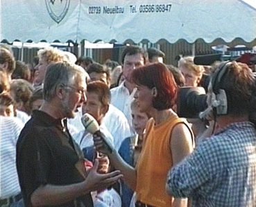 Nachdem der MDR-Sachsenspiegel 1993 und 1995 vom Eibauer Bierzug berichtet hatte waren die Fernsehleute 1997 am Samstagabend live auf dem Festplatz zu Gast, ließen dabei die Zuschauer an den Bierwettkämpfen teilnehmen und machten Lust auf einen Besuch des traditionellen Festumzuges am Sonntag. Dr. Volker Dudek, damaliger Direktor des Stadtmuseums Zittau, erläuterte der Moderatorin Silvia Neumann den historischen Hintergrund des Bierzuges.