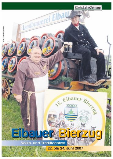 Die Beilage 2007 zeigt Frank Jähne als Eibauer Braumönch Franziskus, Vertriebsmitarbeiter der Eibauer Brauerei, welcher als kostümierter Fassanstecher den Bierzug über Jahre prägte. Vielen ist er noch heute in Erinnerung, wie er von hoch oben vom Prachtgespann der Eibauer Brauerei den Gästen entlang der B 96 zuwinkte. Auf dem Kutschbock sitzend ist der Eibauer Zimmerermeister Michael Fuchs zu sehen. Er ist seit vielen jahren beim Eibauer Festumzug mit einem eigenen Bild vertreten - und das aus Leidenschaft.