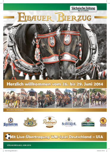 2014: Sie waren von Anfang an die großen Stars des Bierzuges - die weit mehr als 100 Pferde, die zum Teil beritten und zum Teil in vielen Zwei-, Vier- und Sechsspännern zu sehen sind. Seit dem ersten Bierzug im Jahre 1993 sind sie – natürlich neben dem Gerstensaft, der ja bekanntlich dem Umzug seinen Namen gab - die Besonderheit des Umzugs und tragen zum besonderen Flair des Bierzugs bei. Viele Gäste kommen am Sonntag extra wegen der Reiter, Kutscher und Pferde als Zuschauer an die B 96. Ein Dank geht aber auch an die beteiligten Brauereien, welche bisher größten geschlossenen Bierzug Sachsens zusammen mit der Gemeinde Kottmar ausrichten. Die Logos, Prunkgespanne und historischen Bierwagen der Brauereien sind daher auf dem Titelbild der SZ für den 22. Bierzug im Jahre 2014.
