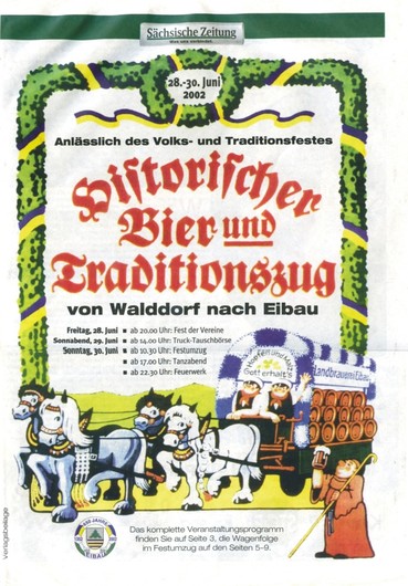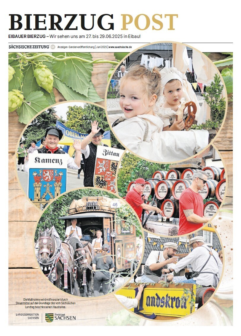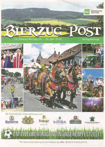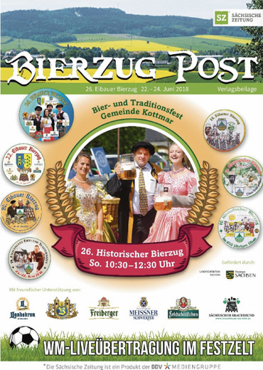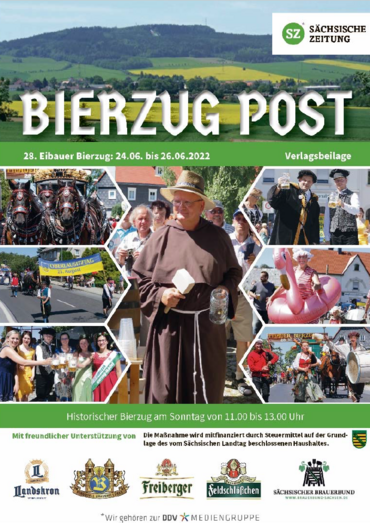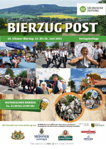 Seit 1997 wird der Bierzug in ununterbrochener Folge von der Sächsischen Zeitung mit einer extra Beilage begleitet. Diese schöne Tradition sorgt dafür, dass die Eibauer und ihre Gäste immer bestens über alles rund um ihr Fest informiert sind.