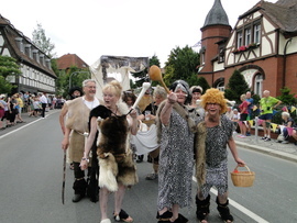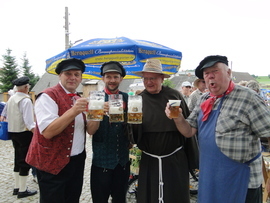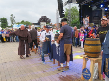 Mit dem traditionellen Anstich durch unseren Braumönch Steffen Dittmar und Landrat Stephan Meyer hat unser Bürgermeister Michael Görke den 29. Bierzug eröffnet. Mit im Bild unser Bierzug-Veteran Christfried Riedel. Dann ging es auch schon los mit den historischen Standarten (Bernd Böhme, Malitz) wie immer an der Spitze des Eibauer Bierzuges, gefolgt von unserem Bürgermeister Michael Görke und Förster Sieber (alias Frank Münnich). Es folgt der Gemeinderat mit dem Thema: „Die Urmenschen, sie würden heute noch leben, hätte es damals schon Bier gegeben!“