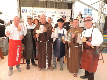 Mit einem achtfachen Parallelbieranstich wurde am Freitagabend das Volks- und Traditionsfest anlässlich des 27. Eibauer Bierzuges eröffnet. Die teilnehmenden Brauereien haben nach dem feierlichen Einmarsch der Vereine der gemeinde Kottmar gemeinsam den holden Gerstensaft fließen lassen. Anschließend erlebten die Festbesucher im voll besetzten Festzelt eine stimmungsvolle Auftaktparty mit "Jolly Jumpers".