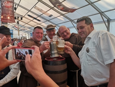 Start unseres Festwochenedes am Freitag mit dem Einmarsch der Vereine, danach Parallelbieranstich der beteiligten Brauereien (der bei den Radebergern sehr feucht wurde - die wollten doch gestern im Festzelt auch gleich mal die Gäste duschen) und Tanzparty im Festzelt mit Jolly Jumper live.
