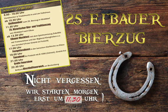 Liebe Gäste, eine wesentliche Änderung wird es beim Bierzug 2017 geben: Zusammen mit den teilnehmenden Brauereien wurde festgelegt, dass der Festumzug am 25. Juni um 11.30 Uhr beginnen wird.